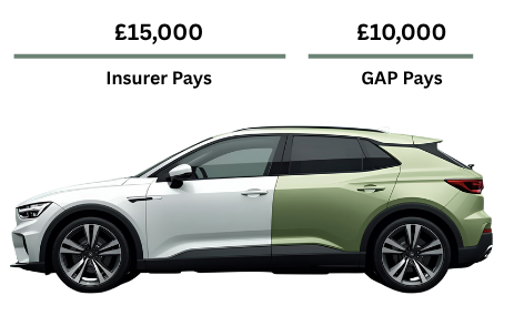 Imagine you purchased your car two years ago for £25,000. Due to depreciation, the current market value of your car has dropped to £15,000.